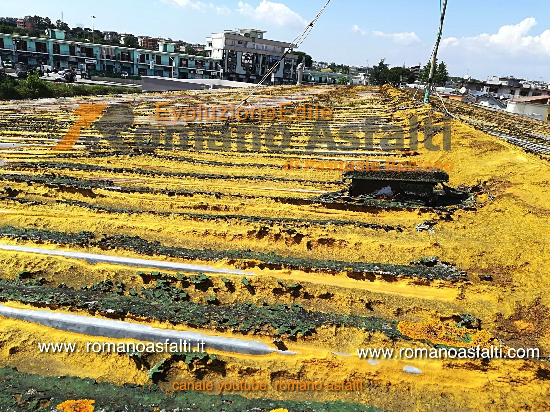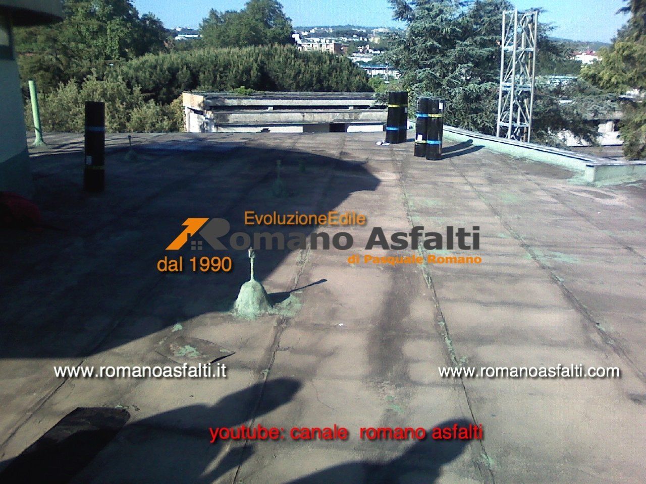 i difetti del tetto caldo ne sono tanti, di cui il primo è quello di perdere ogni anno capacità di isolare termicamente. infatti si potrà notare la differenza di colori che ne denota la scarsa efficienza. in più danneggia precocemente la guaina e poi come in questo caso h ascarsa stabilità dimensionale